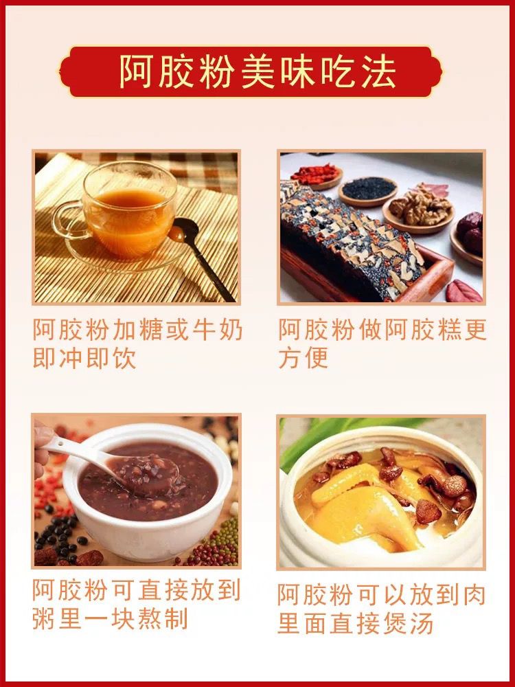 - Convenient Dissolution:No need for yellow rice wine melting; can be quickly dissolved in warm water, milk, or soy milk, solving the trouble of "difficult boiling and easy caking" of traditional donkey-hide gelatin blocks.