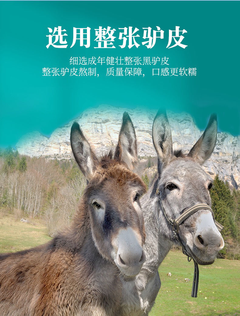 - 原料来源:精选山东东阿核心产区优质黑驴皮,搭配黄酒、冰糖、芝麻(或核桃,依配方调整)等辅料,遵循 “古方炮制” 标准,无激素、无防腐剂、无人工色素