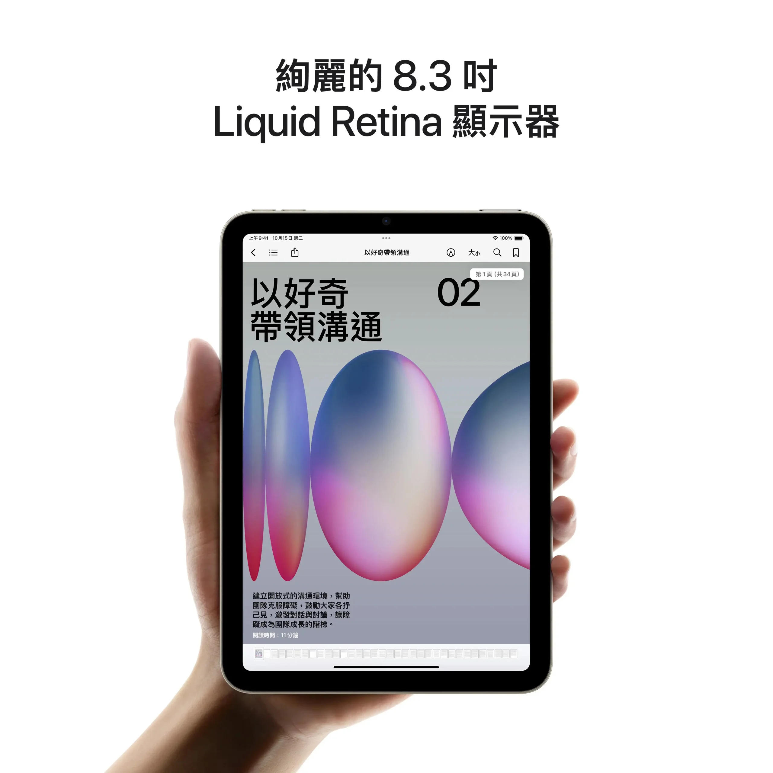 - 8.3 吋 Liquid Retina 顯示器。絢麗的 Liquid Retina 顯示器,具備 P3 廣色域、原彩顯示和超低反射率等先進技術,看什麼都搶眼驚豔1